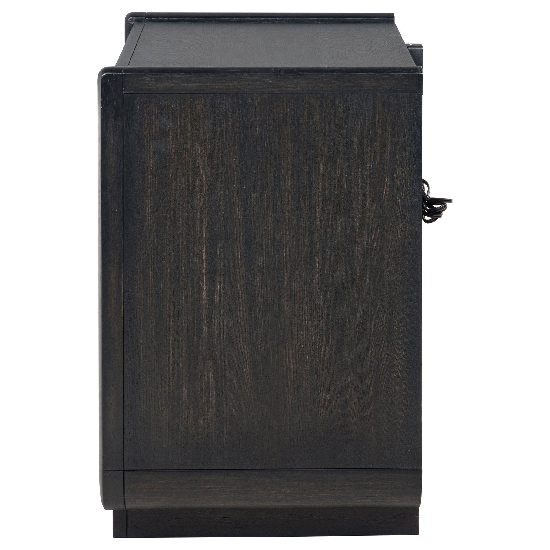 Dark elegance and quiet innovation come together in this two-drawer nightstand, where softened curves and a burnished black finish evoke serene sophistication. A warm LED-lit shelf casts a golden glow beneath the top drawer, creating ambiance for evening hours. Dual USB ports keep modern essentials close, while a black felt-lined drawer cradles delicate keepsakes. Built with soft-closing glides, English dovetail joinery, and a dust panel, this piece blends function with intimate beauty. Key Features: • Two-drawer nightstand with open shelf and integrated LED lighting for ambient glow • Burnished black finish enhances the wood grain with a rich, refined presence • Top drawer is black felt-lined to keep delicate items safely cushioned • Dual USB charging port includes both USB-A and USB-C for everyday convenience • Soft-closing ball bearing glides and dovetail joinery ensure lasting durability • Finished with a dust panel to maintain a clean, enclosed storage environment