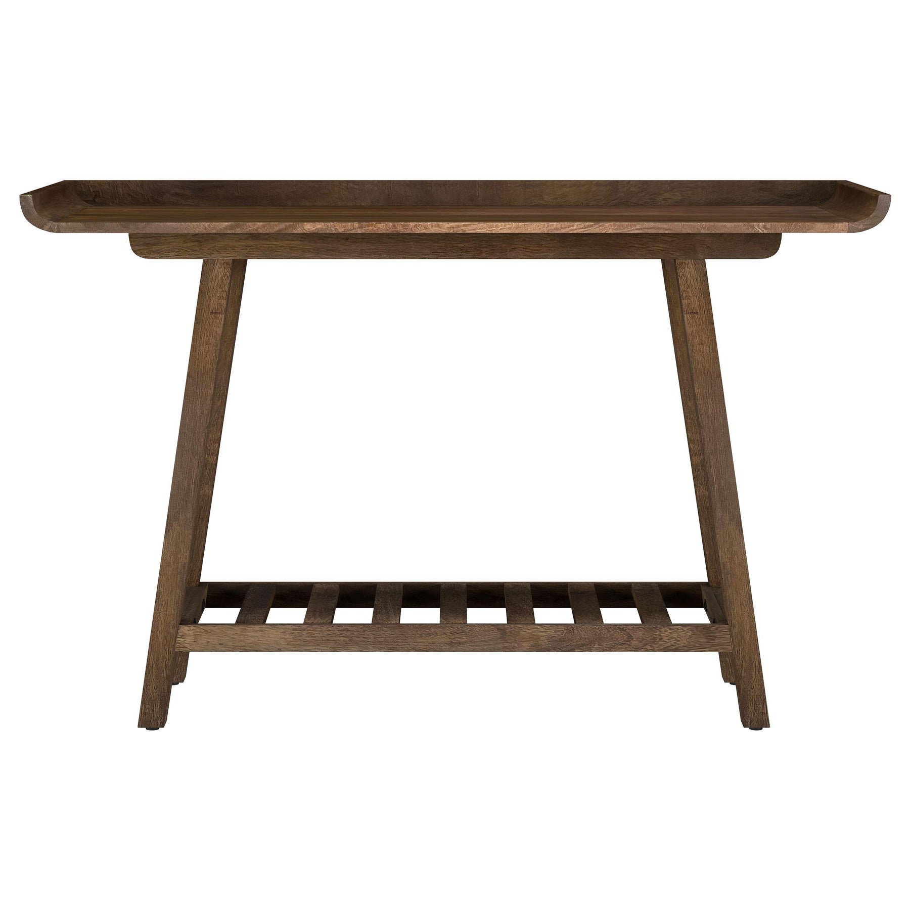Introduce a touch of warmth and natural charm into your home with this solid mango wood console table. Its distinctive tray-style top features subtly raised edges, providing both a secure surface for décor and a practical spot to keep everyday essentials from sliding off. Below, a slatted shelf offers open storage space for baskets, books, or decorative accents. With its sturdy build, unique wood grain patterns, and versatile style, this console table easily complements various interiors. Key Features: • A versatile console table designed for displaying and organizing your belongings • Warm natural wood finish highlighting the mango wood’s unique grain • Raised tray-style top to keep items neatly contained and in place • Open slatted shelf providing additional storage or decorative display • Crafted entirely from solid mango wood for durability and character • Perfect for enhancing entryways, living areas, or hallways with organic style