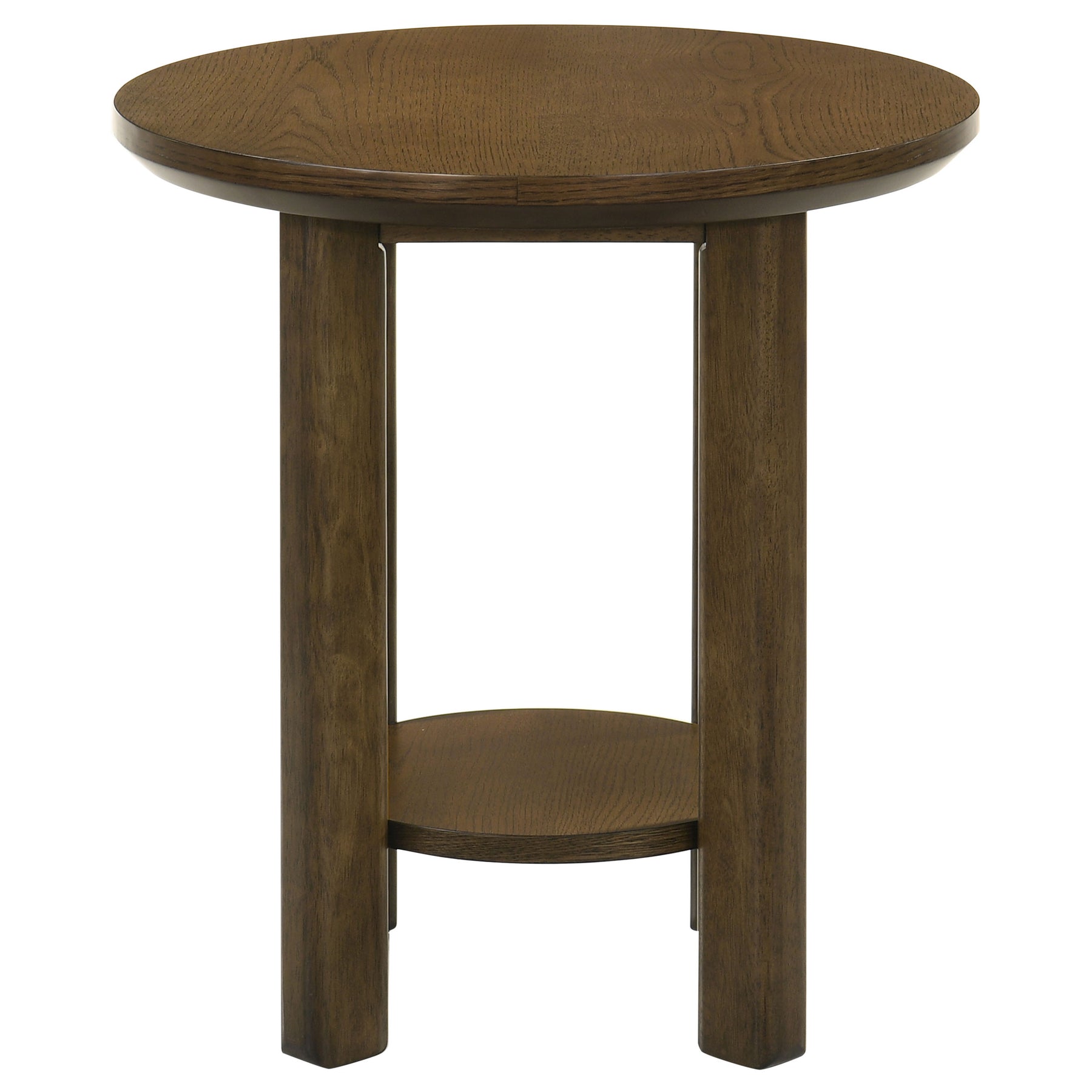 Gracefully curved and richly grounded, this end table brings sculptural elegance to any living space. A smooth, round top floats above four cylindrical legs, creating a gentle rhythm of form and function. Below, a low circular shelf adds space for cherished objects or everyday essentials. Crafted from solid wood, engineered wood, and white oak veneer, this accent table offers quiet strength and warm simplicity beside any chair, sofa, or reading nook. Key Features: • Round end table with sculpted legs and shelf for functional and balanced living room use • Washed oak finish brings soft tone and subtle wood grain to the circular surface and shelf • Cylindrical legs add visual structure and grounding to the smooth round profile • Lower open shelf offers added space for books, décor, or small storage baskets • Crafted from rubberwood, engineered wood, and white oak veneer for strength and warmth • Ideal as an accent or side table for relaxed spaces with casual modern appeal