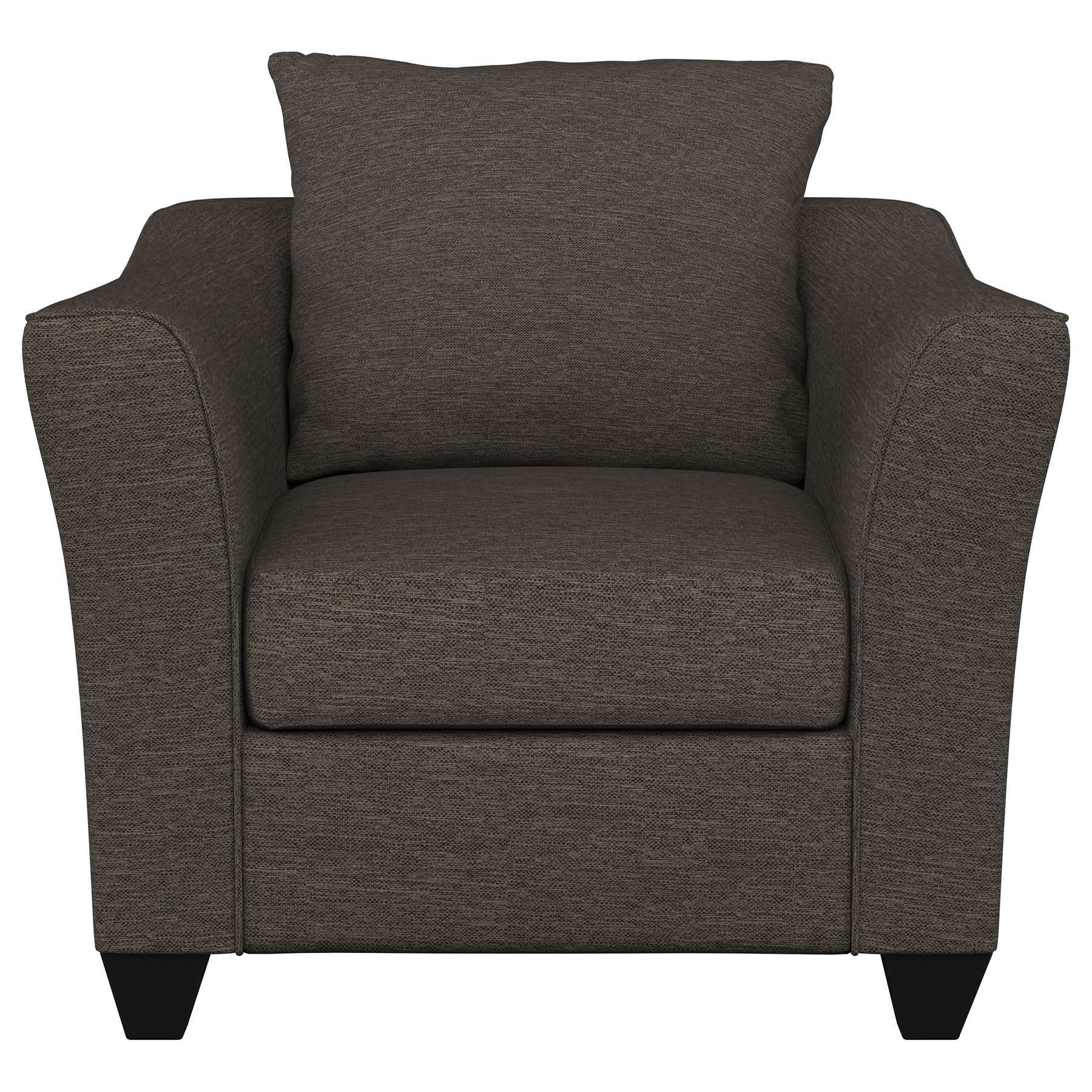 Designed for versatility and comfort, this accent chair embodies contemporary simplicity with flared arms and tailored upholstery. Plush cushions with resilient foam fill invite relaxation, while its sculpted silhouette pairs beautifully with a sofa or loveseat. Whether completing a coordinated ensemble or standing alone as a reading chair, its refined form and durable construction make it a lasting favorite for everyday use._x005F_x000D_ Key Features: • Single accent chair with flared arms and smooth sand-tone upholstery • Soft polyester fabric enhances comfort and contemporary appeal • Plush foam seat and back create a supportive sitting experience • Rounded arm design offers visual warmth and ergonomic comfort • Espresso tapered legs stabilize and accent the sleek proportions • Ideal as a reading chair or coordinated companion piece