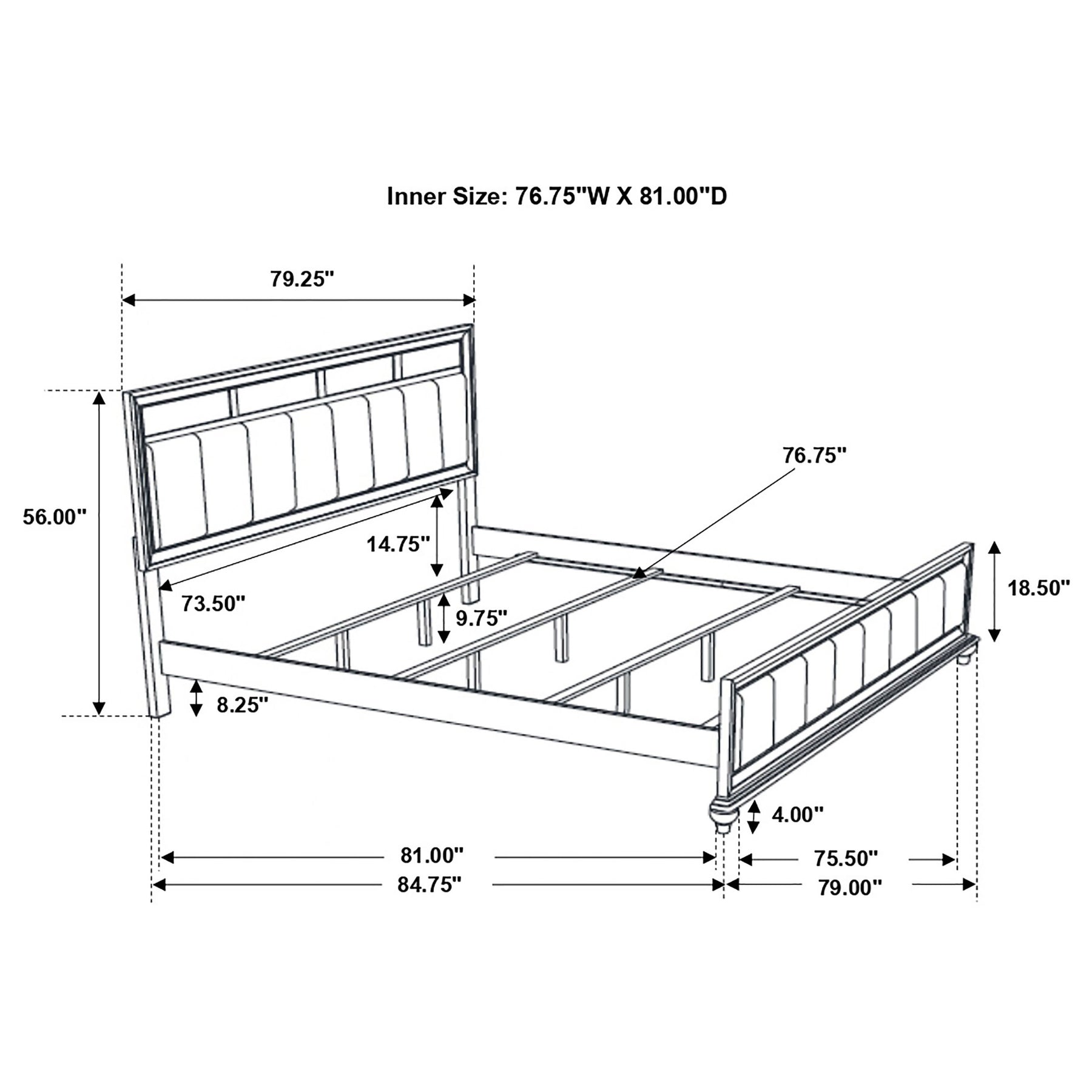 Infuse your bedroom with sleek sophistication and subtle glam with this panel bed. A tall headboard and matching footboard feature channel tufted panels wrapped in metallic leatherette, creating a striking focal point. The crisp white frame is detailed with molding for depth and finished with turned feet for timeless charm. Sparkling accents add a touch of radiance, while the bed is crafted from solid rubberwood, engineered wood, and okume veneer for strength and durability in everyday use._x000D_ Key Features: • Queen panel bed with white finish and glamorous metallic leatherette panels • Tall headboard and low footboard feature channel tufting for sleek dimension • Molded frame edges add depth and refined detail to the bed’s classic profile • Sparkling accent trim enhances the bed with a radiant and stylish touch • Crafted with solid rubberwood, engineered wood, and okume veneer materials • Turned bun feet complete the look with timeless and elegant design appeal