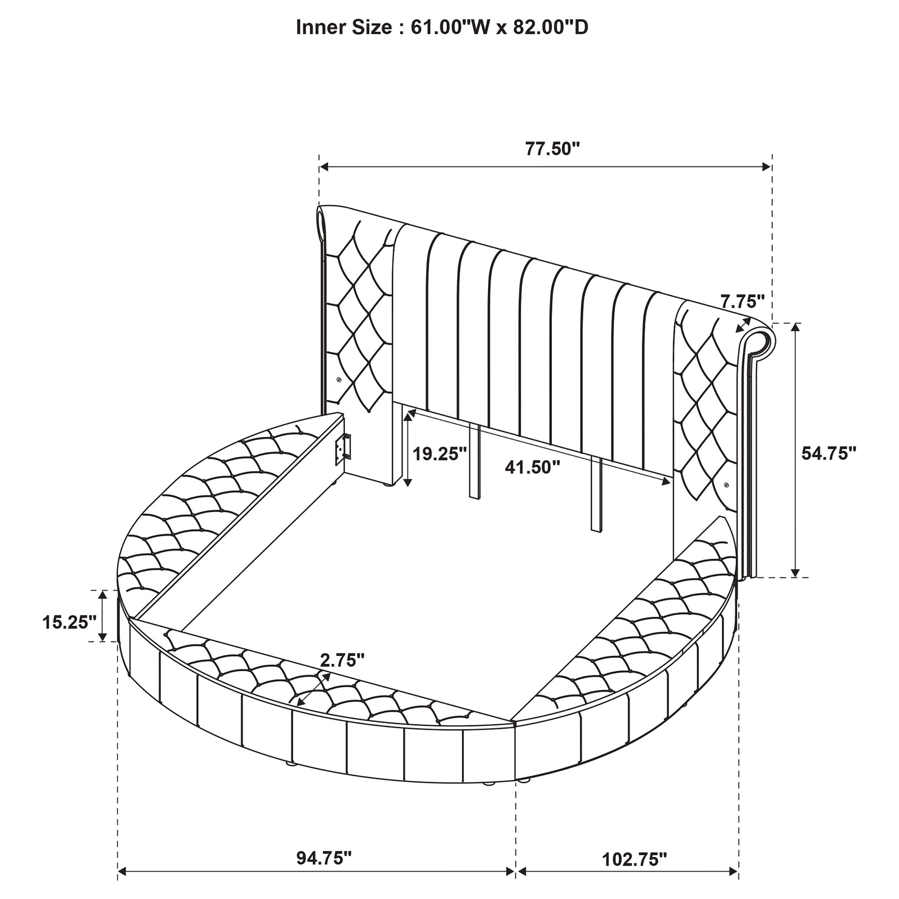 Embrace the art of retreat with a bedroom set that transforms luxury into an experience. Anchored by a grand round bed wrapped in plush velvet, the design features a sculpted scroll headboard with deep tufting and vertical channeling. Built-in USB-A and USB-C ports on both sides blend convenience into the romance, while hidden compartments beneath the upholstered base offer clever storage. Coordinating pieces mirror the softness and sparkle, with crystal hardware and sleek glass-topped silhouettes that complete the scene with quiet opulence. Key Features: • Round bed features a fully upholstered frame with hidden storage beneath lift-up panels • Scroll-back headboard includes vertical channeling and deep tufting in soft velvet fabric • Dual USB charging ports with USB-A and USB-C access are built into both sides of the bed • Coordinating case pieces feature velvet upholstery with vertical stitching and crystal accents • Glass-topped surfaces offer durability while enhancing the visual elegance of each piece • Constructed from solid rubberwood, engineered wood, velvet, foam, and mirrored materials