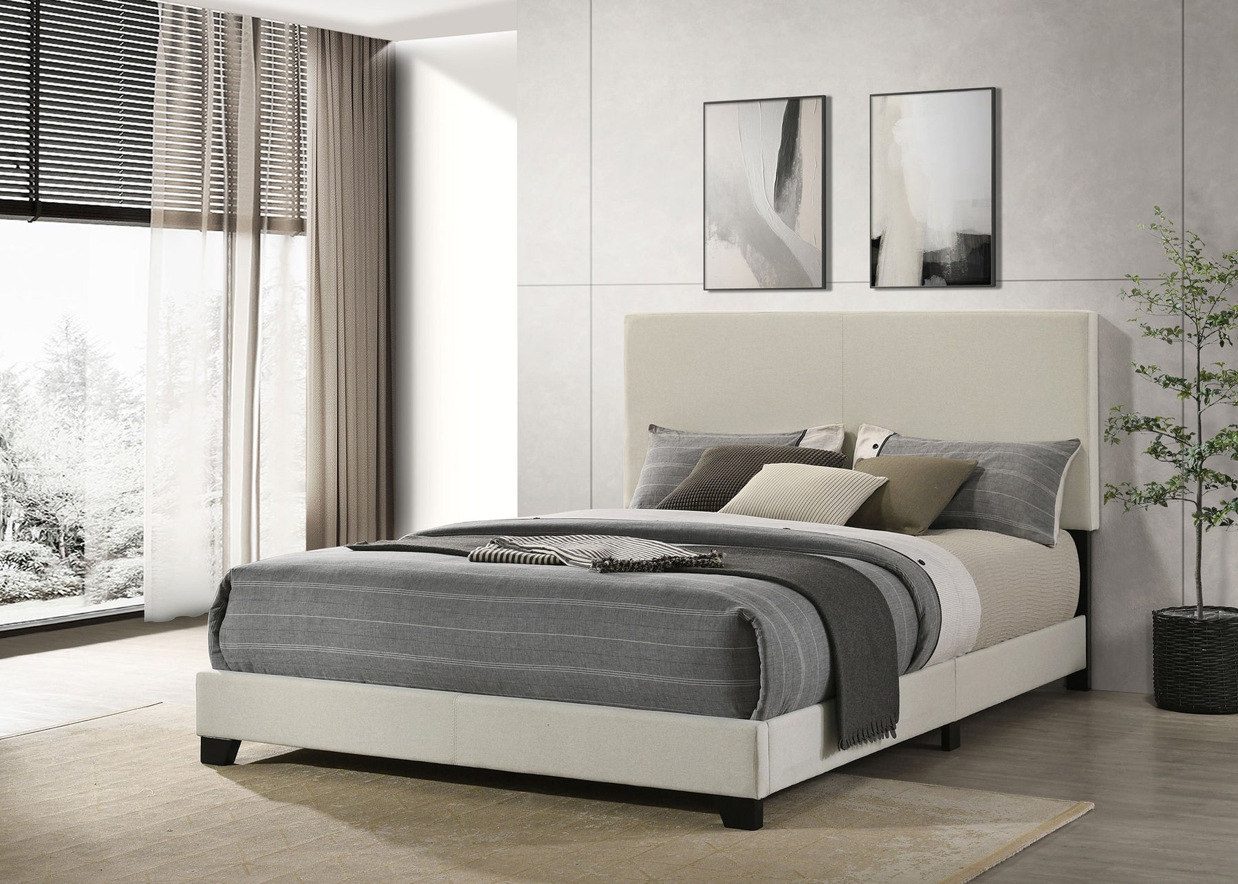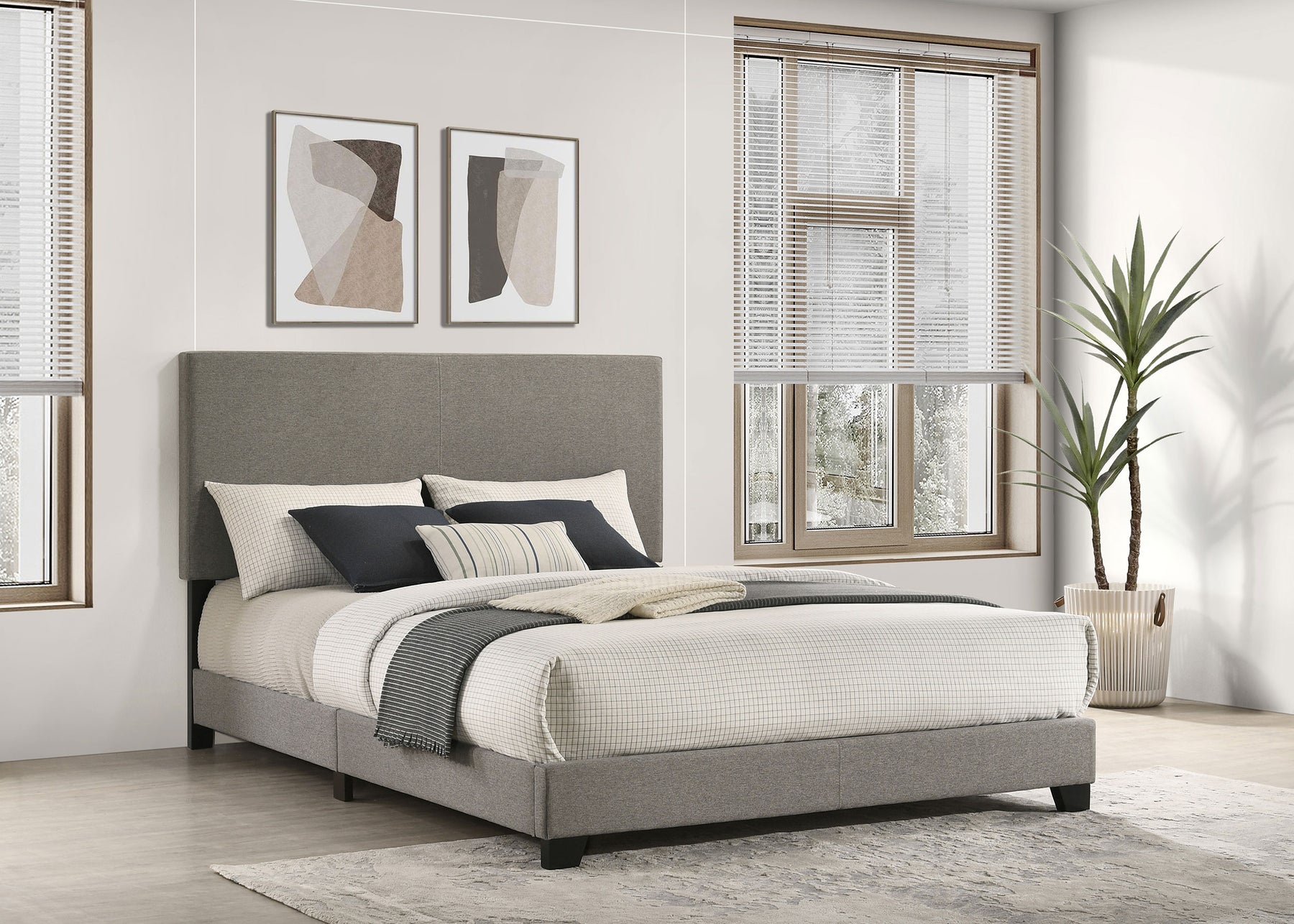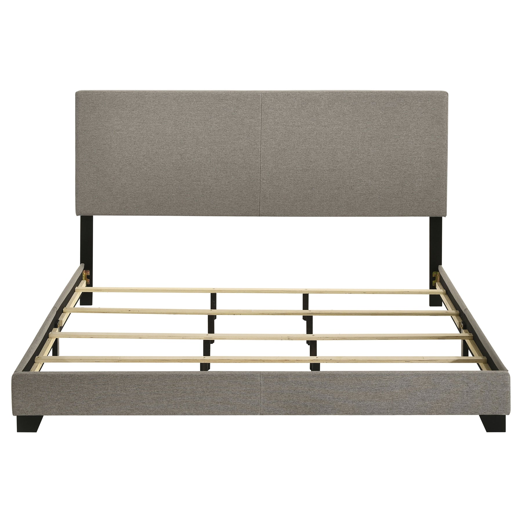 Transform your bedroom with this versatile panel bed, available in both faux leather and fabric upholstery options to suit any decor. Featuring a padded headboard and sleek design, it offers modern elegance and everyday comfort. Crafted with rubberwood, engineered wood, and foam, it ensures durability, while solid wood legs in a black finish add stability and a refined touch. The platform construction eliminates the need for a box spring, making it both stylish and functional. Key Features: • Queen bed upholstered in brown faux leather upholstery • Padded headboard provides comfort and a sleek aesthetic • Sturdy construction with rubberwood, engineered wood, and foam • Solid wood legs in a black finish add a refined touch • Platform design supports your mattress without a box spring • Versatile design complements various bedroom layouts and styles