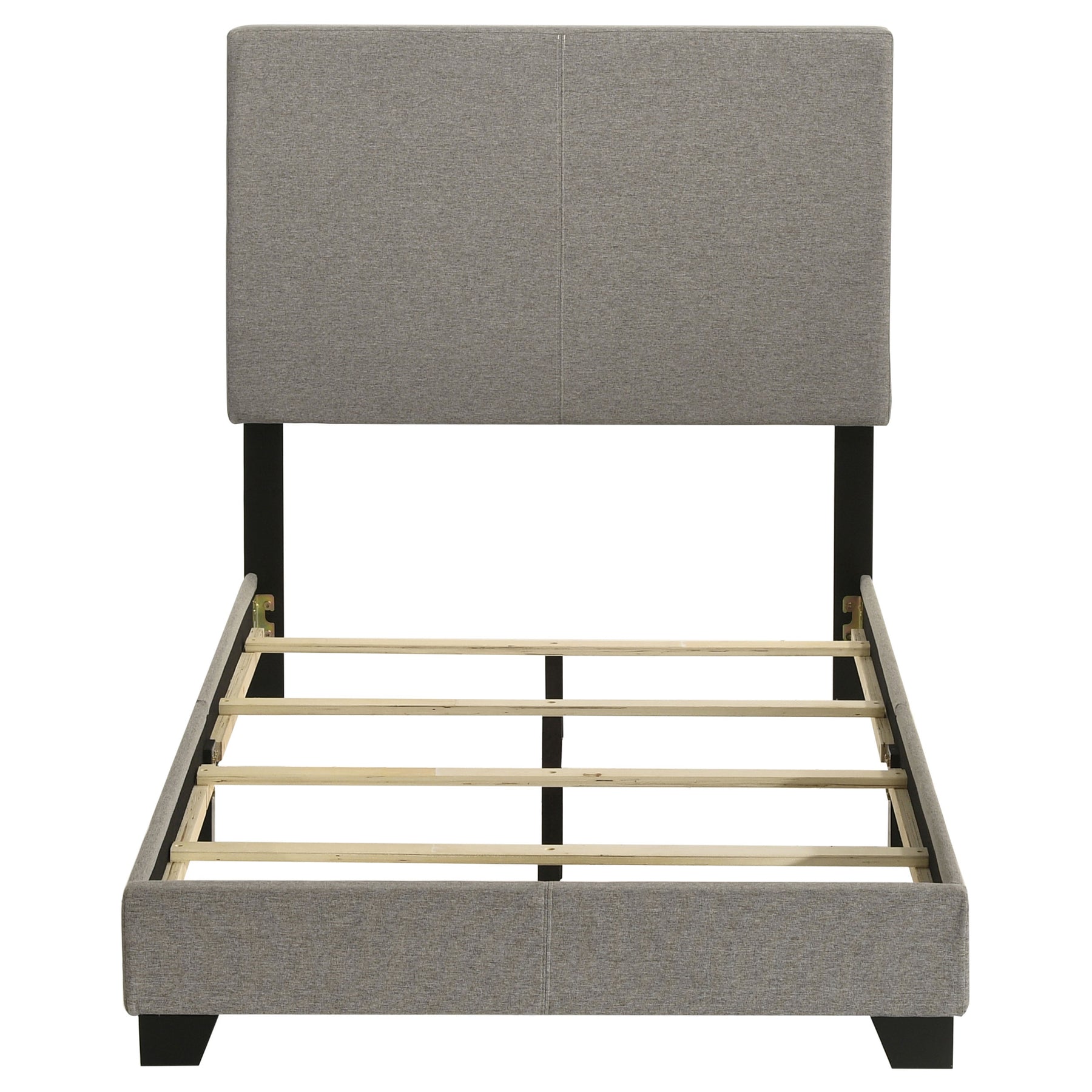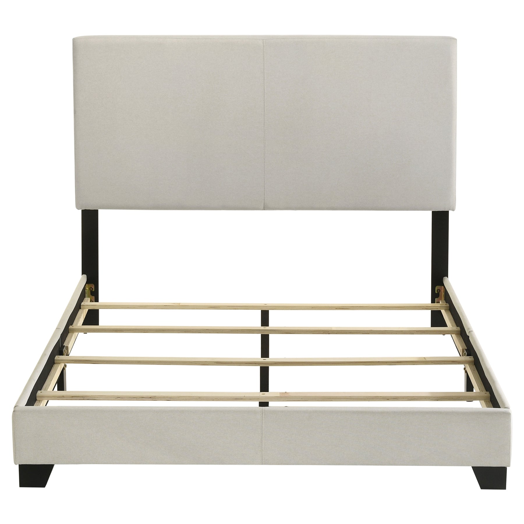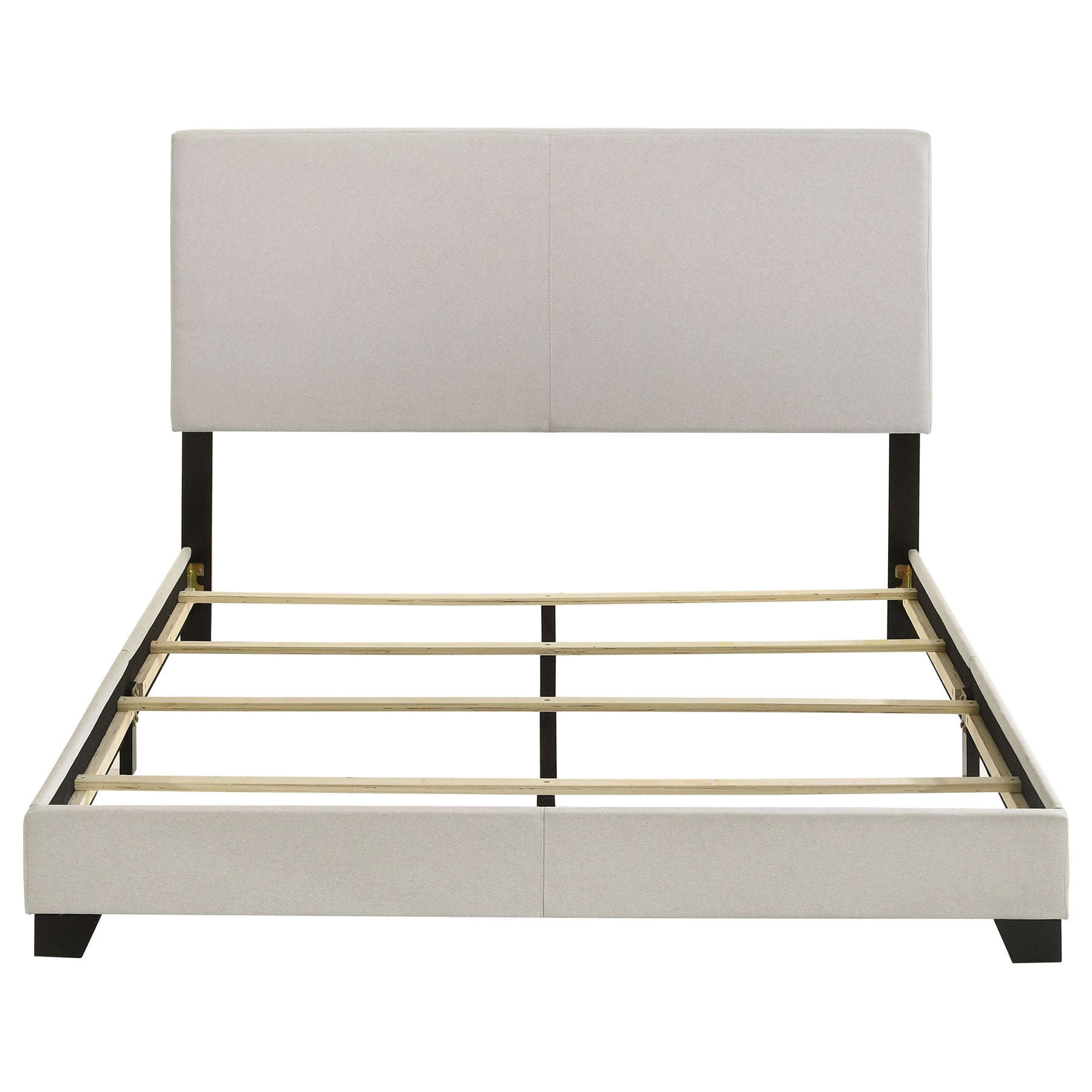 Transform your bedroom with this versatile panel bed, available in both faux leather and fabric upholstery options to suit any decor. Featuring a padded headboard and sleek design, it offers modern elegance and everyday comfort. Crafted with rubberwood, engineered wood, and foam, it ensures durability, while solid wood legs in a black finish add stability and a refined touch. The platform construction eliminates the need for a box spring, making it both stylish and functional. Key Features: • Queen bed upholstered in brown faux leather upholstery • Padded headboard provides comfort and a sleek aesthetic • Sturdy construction with rubberwood, engineered wood, and foam • Solid wood legs in a black finish add a refined touch • Platform design supports your mattress without a box spring • Versatile design complements various bedroom layouts and styles