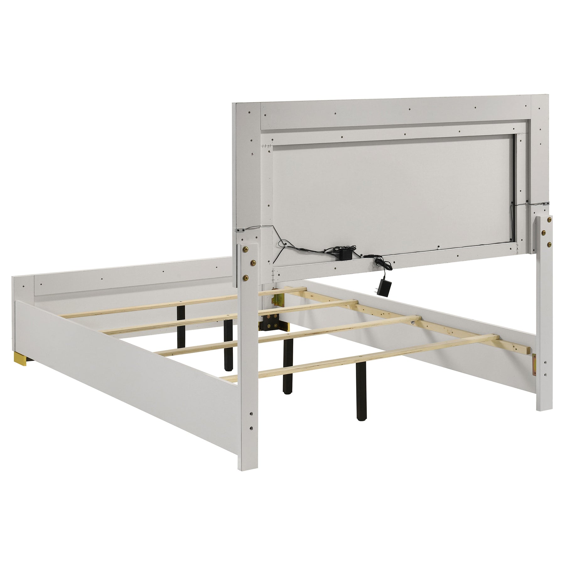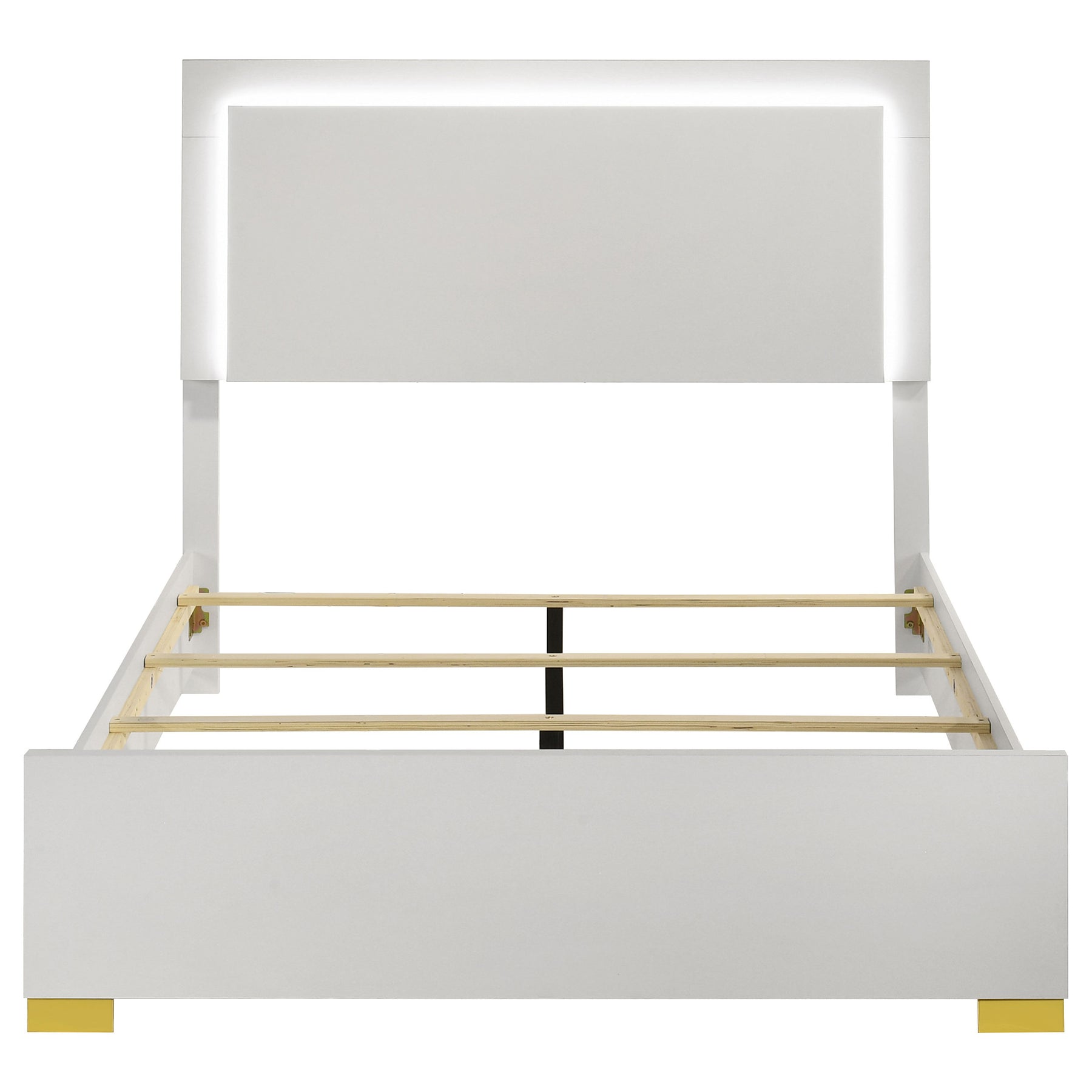 Explore the possibilities of modern features that render this chic bed a haven for relaxation and a comfy place to sleep and lounge. A stylish yet minimalist design feature is perfect for anchoring your contemporary bedroom. Assembled of wood products and melamine laminate, it offers updated and sturdy construction. Ethereal energy-efficient lighting frames its tall headboard, operated with a touch mechanism through headboard-mounted buttons. Gleaming gold metal finish feet are petite yet noticeable. Key Features: • Discover the modern conveniences that transform this chic bed into a sanctuary of relaxation and a cozy spot for both sleep and lounging • Elevate your contemporary bedroom with its stylish yet minimalist design, serving as a striking focal point • Built from wood products and melamine laminate, this bed boasts durable and contemporary construction • Enjoy the ethereal ambiance created by energy-efficient lighting framing its tall headboard, easily controlled through headboard-mounted touch buttons • Notice the elegant touch of gleaming gold metal finish feet, adding a subtle yet distinctive touch to this stylish bed
