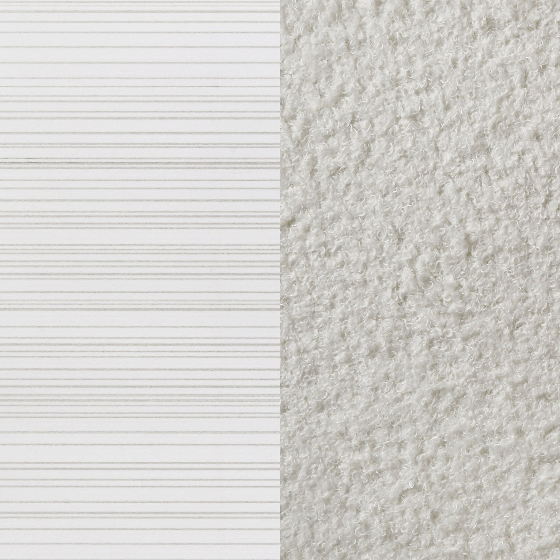 Encourage a glam vibe in your refined bedroom with a modern four-piece bedroom set. Centering on a stylish bed with an upholstered headboard and low footboard, the set includes a two-drawer nightstand for easy bedside storage and display space. A seven drawer dresser and mirror complete the set, adding diamond-like trim across its face that catches the light and offers a sophisticated touch. Bracket feet add a touch of dimensionality and movement to each piece and jewel-like bar pulls add intriguing sparkle. A cool white finish is textured, while white finish trim is smooth, creating a touch of textural contrast that add engaging style. Key Features: • Bedroom set with upholstered panel bed featuring glitter-accented headboard stripe • Textured white panel surfaces contrasted by smooth white molded trim throughout • Low profile footboard and bracket legs offer a modern and airy foundation • Storage cases include secret jewelry drawers behind glittery front panels • Drawers are felt-lined and glide on full-extension hardware for smooth operation • Crystal-style handles and sparkling trim provide glam-inspired sophistication