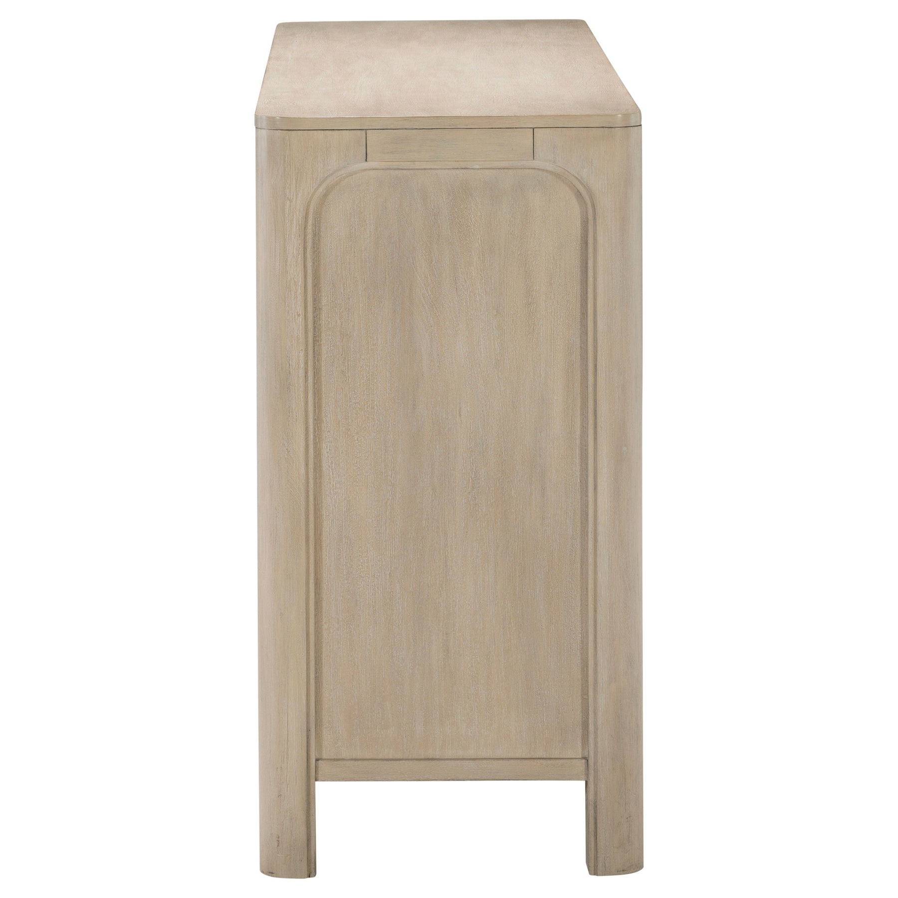 With softened curves and a sculpted profile, this nine-drawer dresser brings refined balance to the bedroom. Arched corners frame spacious drawers with gentle ease, while antique-finished hardware adds a whisper of vintage charm. A hidden jewelry tray and felt-lined top drawers elevate everyday use with thoughtful luxury. Crafted from mahogany, engineered wood, and mango veneer, it offers enduring grace and generous storage. Key Features: • Nine-drawer dresser with rounded edges and sculpted profile for graceful bedroom storage • Weathered mango finish brings natural warmth and subtle wood grain texture • Felt-lined top drawers offer soft storage for delicate pieces and daily essentials • Hidden jewelry tray in upper right drawer adds refined organization and security • Heavy duty drawer glides ensure smooth, quiet drawer function over time • Crafted from mahogany, engineered wood, and mango veneer for durable structure