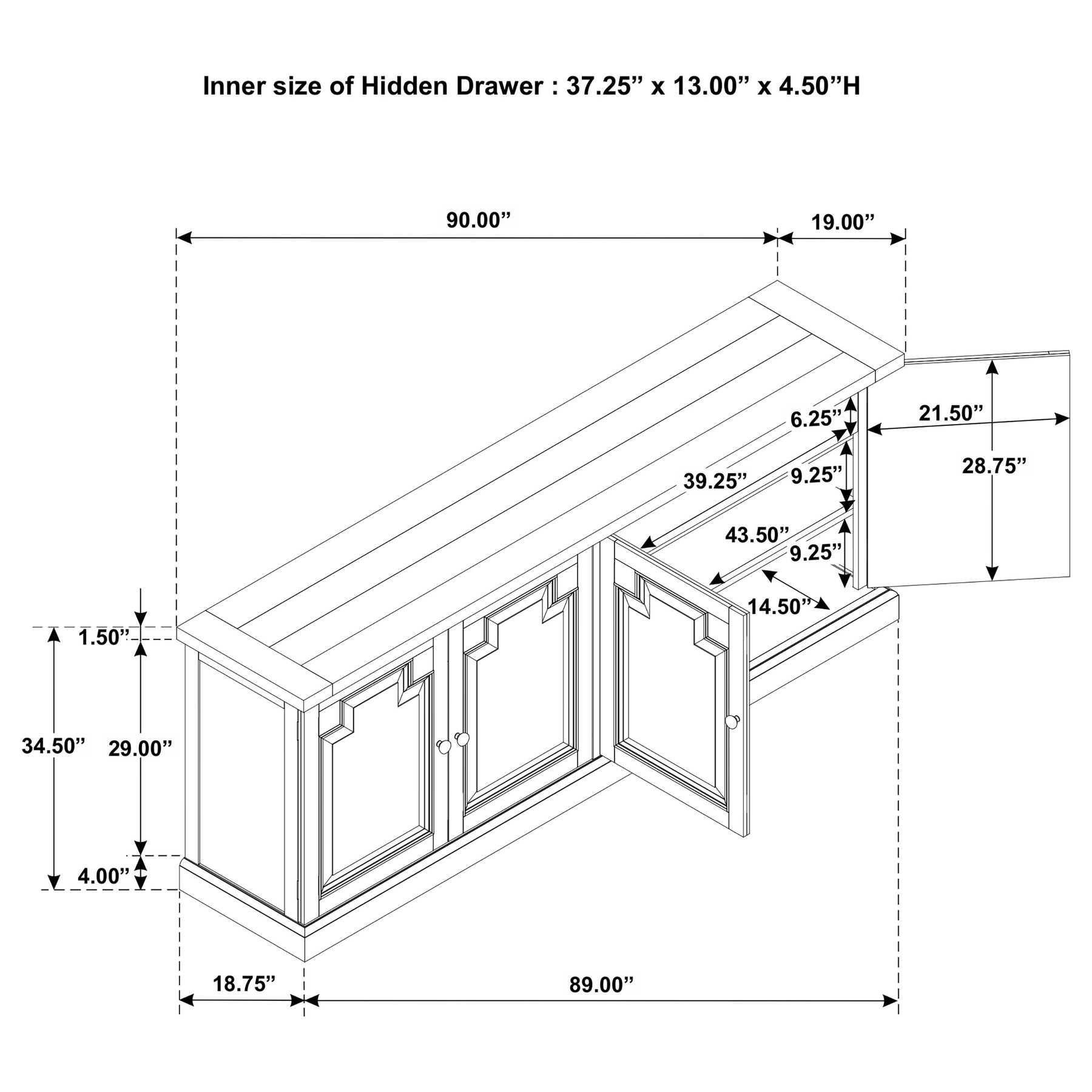 This four-door sideboard offers a refined blend of storage and style, perfect for dining and entertaining spaces. Crafted from pine, plywood, and pine veneer, it features a beautifully planked top that enhances its rustic charm. Raised panel doors lend a classic, sophisticated appeal, while the spacious interior includes two nested drawers with self-closing metal slides for effortless organization. This versatile piece functions beautifully as a server, providing ample space for dishware and linens. With its elegant craftsmanship, it also serves as a buffet, adding both convenience and timeless appeal to any home. Key Features: • Four-door sideboard with raised panel doors for a classic, textured look • Pine, plywood, and pine veneer construction ensures lasting durability • Planked top highlights the natural grain with a rustic honey finish • Spacious interior storage includes two nested drawers for organization • Self-closing metal slides ensure smooth and effortless drawer operation • Warm rustic honey tone enhances farmhouse and traditional decor