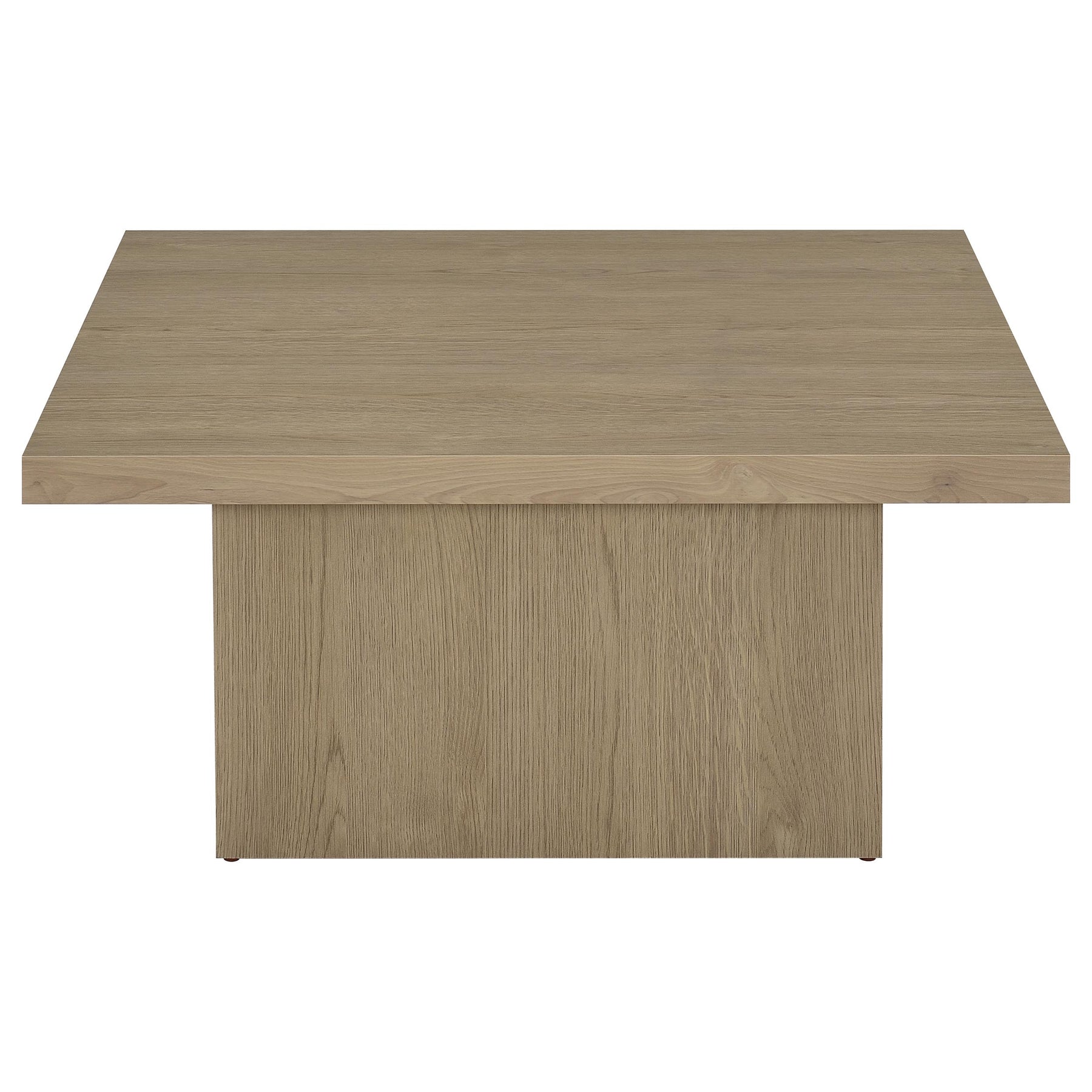 Natural ambiance brings a fresh motif to your casual spaces in the form of a square wood coffee table with the power to change up a design scheme. The square coffee table reflects a heady natural vibe with wood grain markings on natural mango finish wood products construction. Its spacious overhang top and oversized block base create delightful optical effects with a low-key feel. Centered in a casual yet elegant room, it speaks to your signature organic design statement. Experiment with suitable ensemble pieces to make the rustic look of this cocktail table a main factor. Key Features: • Square coffee table made from engineered wood with laminate veneer for durability • Features a natural mango wood look with visible grain markings for rustic charm • Spacious overhang top provides plenty of room for display and functionality • Oversized block base adds to the table's sturdy and balanced design • Eco-friendly laminate veneer offers a scratch-resistant surface for longevity • Ideal for casual, rustic interiors seeking a natural and understated aesthetic