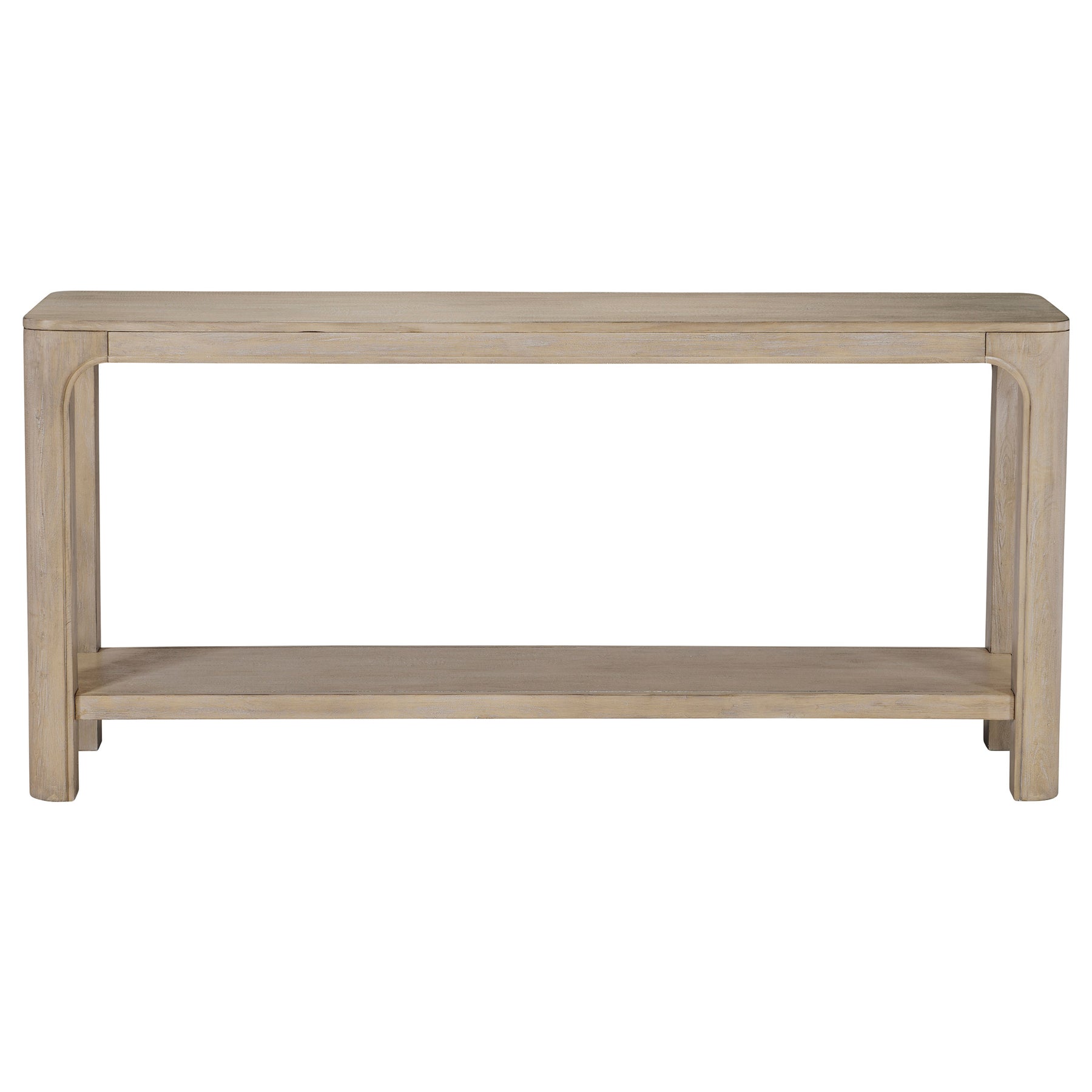 Elegant in proportion and effortless in form, this console table brings sculptural ease to any space. Its elongated shape rests on curved legs, with a wide lower shelf for balance and function. Whether used as a sofa table or entryway accent, it offers timeless utility. Crafted from mahogany, engineered wood, and mango veneer, its warm texture and durability make it a versatile addition to your home. Key Features: • Console table with sculpted legs and clean silhouette for versatile living room use • Weathered mango finish enhances wood texture with a soft, neutral tone • Wide lower shelf provides open storage for décor, baskets, or books • Rounded corners and arched leg profiles create a softened architectural form • Crafted from mahogany, engineered wood, and mango veneer for strength • Ideal as a sofa table, console table, or entryway surface for any interior style
