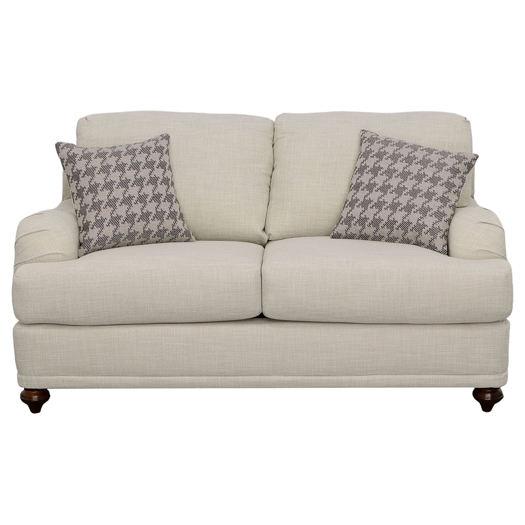 Taking a page from cottage-style farmhouse ambiance, this two-piece sofa and loveseat set wins over family and guests with its elegant simplicity. With tailored English arms and turned legs offering a contrasting espresso finish, each piece of this set shines with a light grey linen-like upholstered cover. Reversible cushions with T-cushions on each end create comfort and stay in shape, as a solid wood frame with a sinuous spring deck sets the stage for durability. Attached back cushions remain stationary to prevent shifting. Enjoy the designer look of seven accent pillows with varying blue print covers. Key Features: • Bring LOVE to your living area with this sophisticated farmhouse collection • Tailored English arms • Turned legs in espresso • No rearranging required with easy to maintain attached back cushions • Extend the life of your upholstery set with reversible seat cushions