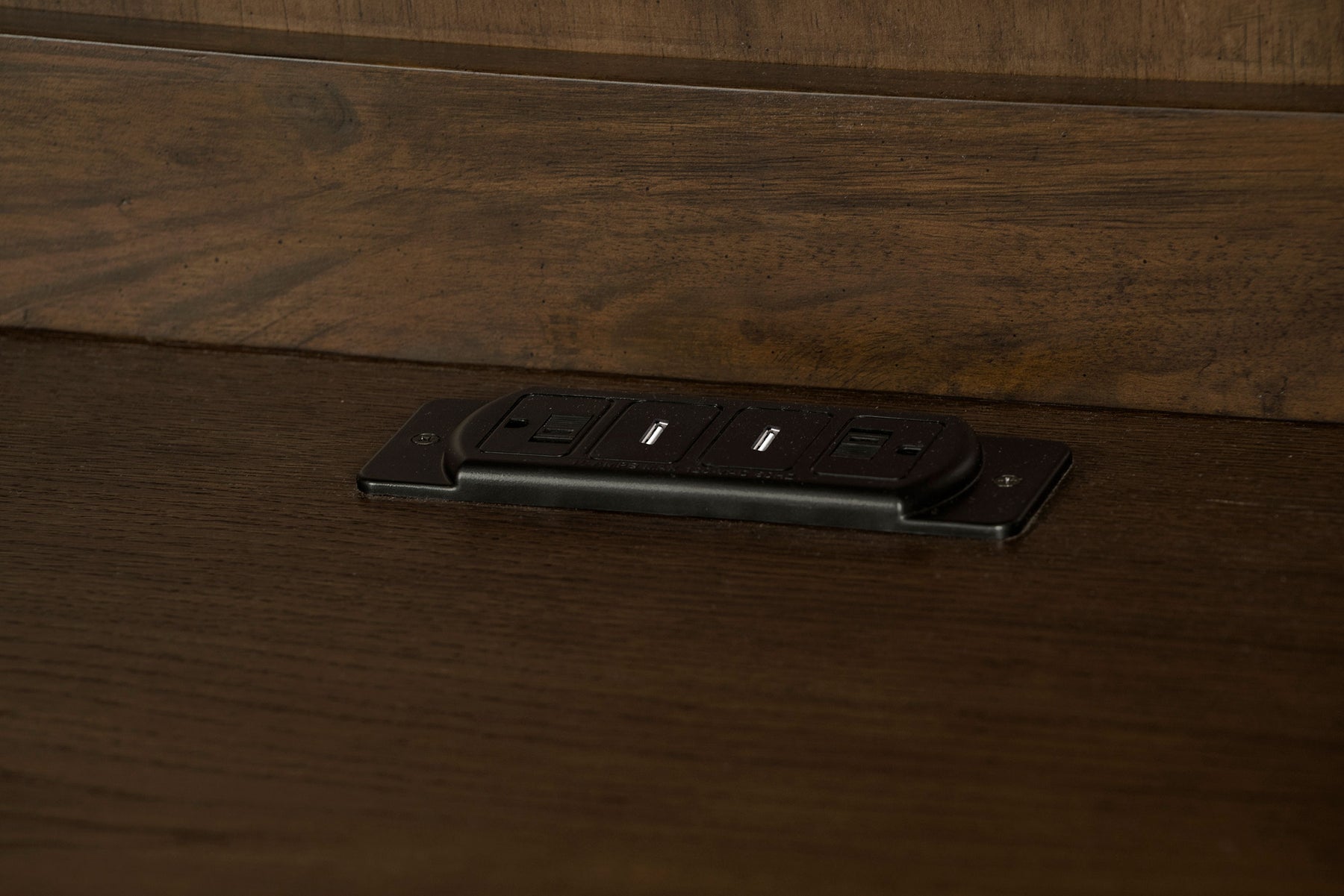 This burnished oak credenza with hutch is bound to enhance your office space. Stately and traditional in style, there is plenty of storage space with five drawers, two top cabinets, and two lower cabinets that lock for safekeeping. Crown molding detailing and paneling make for a magnificent display. Supportive bracket style feet provide stability and an attractive upgrade for this wood credenza. Include this piece in your traditional style office space. Key Features: • Executive home office collection finished in burnished oak • Features felt lined top drawers, 45mm full extension ball bearing glides, and bronze hardware • Credenza includes a power outlet (2AC/2USB), center keyboard drawer, two top drawers and middle drawer with removable dividers, one lockable file cabinet, and a cabinet with an adjustable shelf • Hutch includes a single drawer, two cabinets with clear tempered class door panels, and two adjustable shelves • Constructed with rubberwood, plywood, MDF, particle board, and white oak veneer