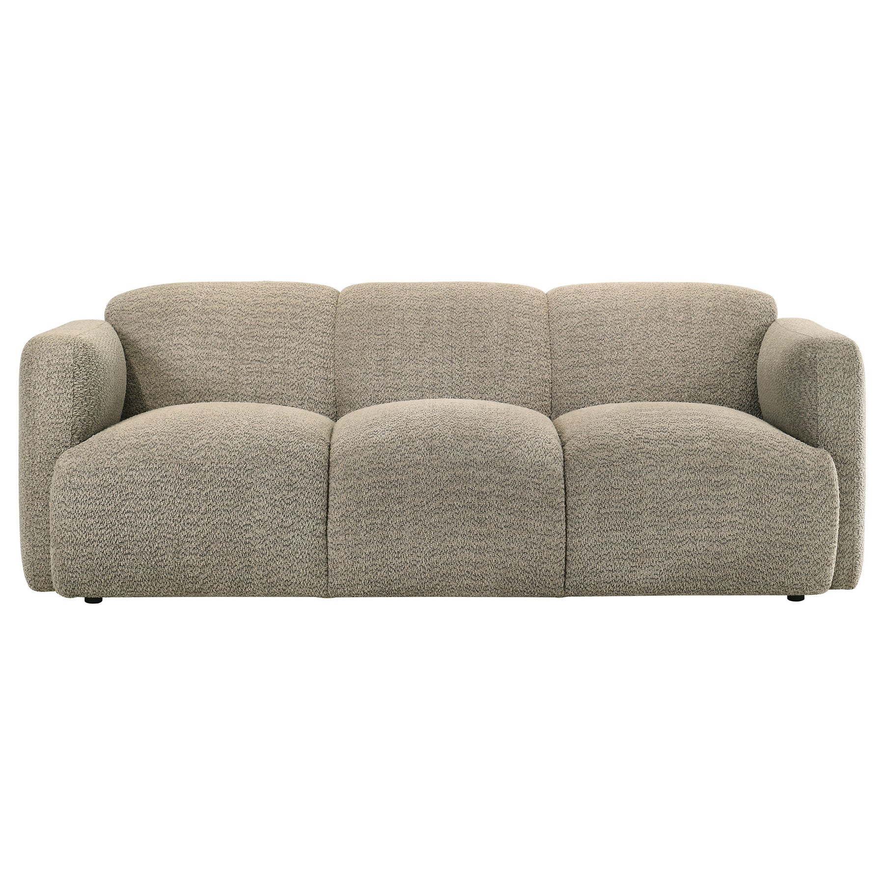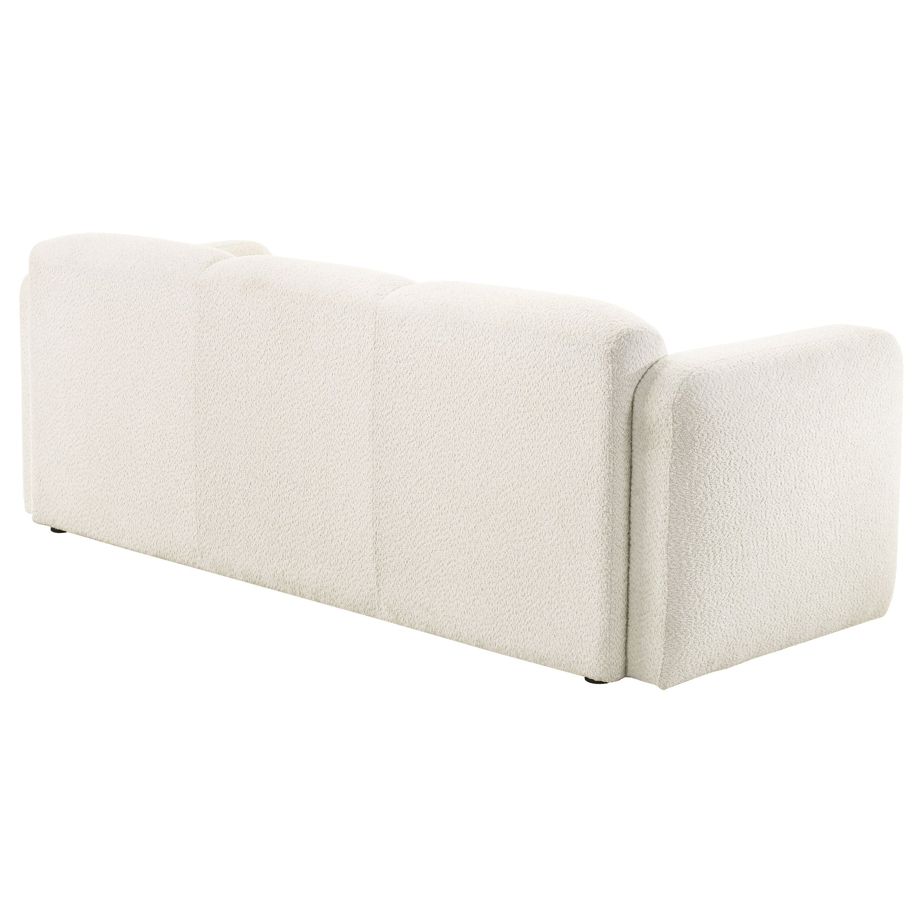 This sculptural sofa blends soft form with enduring comfort for a modern, relaxed atmosphere. Upholstered in a richly textured fabric with a cozy hand, its rounded profile flows seamlessly from the low back to wide, curved track arms. Built with high-quality foam and supportive pocket coil seating, it invites you to sink in and stay awhile. Fully finished and designed for everyday ease, this three-seat sofa anchors the living space with plush, minimalist style. Key Features: • Three-seat sofa with rounded silhouette and low-profile design for sculptural modern style • Upholstered in textured white fabric with a warm, soft hand and dimensional weave • Curved track arms and backrest create a continuous, enveloping frame • High-quality foam padding delivers plush comfort across the entire seat • Pocket coil seating offers long-lasting support and shape retention • Ideal for modern living rooms seeking both softness and subtle sophistication