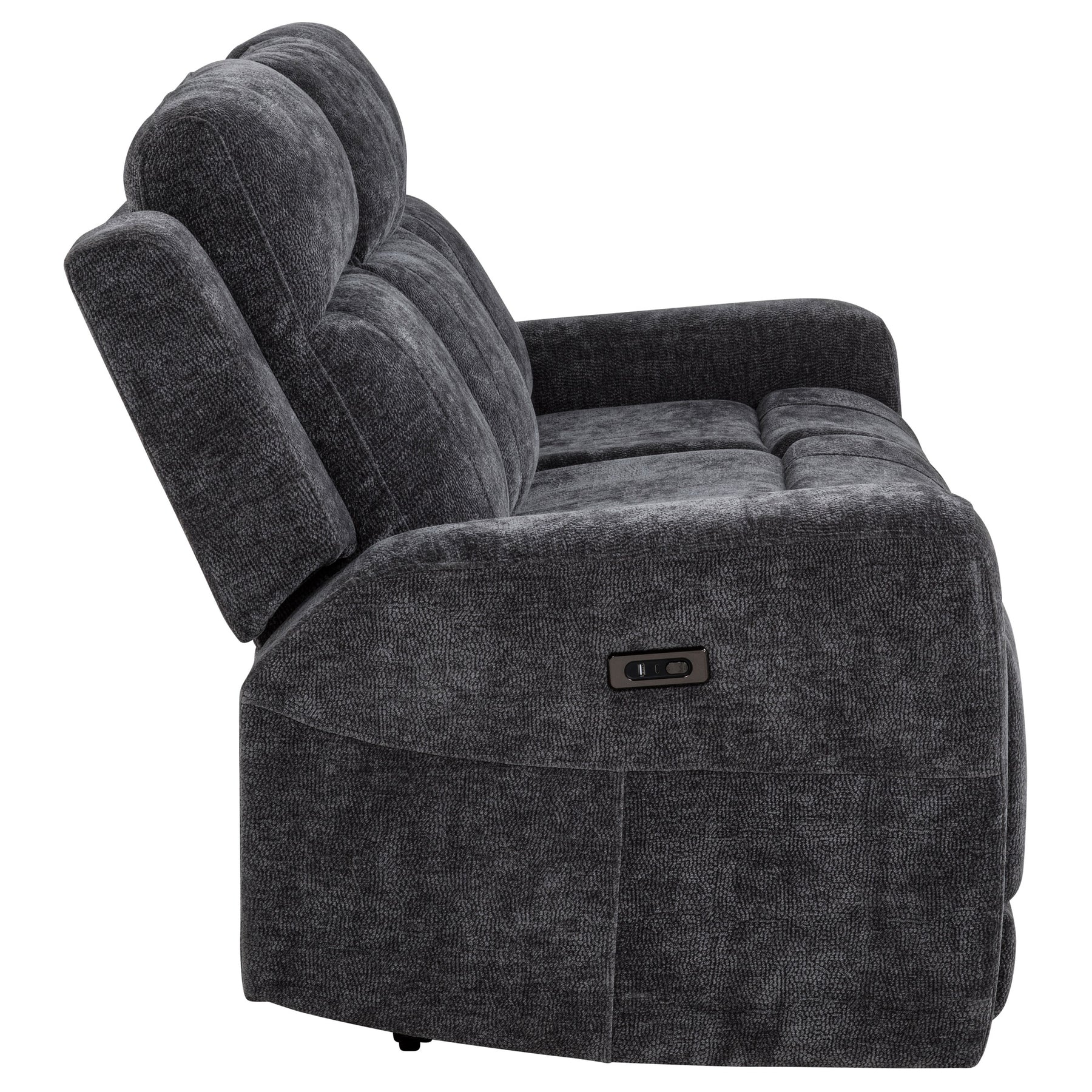 Sink into the soft embrace of this chenille power reclining sofa, where comfort meets thoughtful design. Smooth dual recliners respond at your touch. Built-in USB-A and USB-C ports keep your devices charged as you relax. Wrapped in richly textured chenille and supported by a durable metal frame, this sofa brings modern ease and everyday indulgence to your living space. Key Features: • Dual recliners operate via smooth push-button control • Ivory chenille upholstery showcases a soft surface with subtle woven texture • Features a built-in USB-A and USB-C port for dual-device charging convenience • Padded armrests and supportive headrests enhance lounging and relaxation • Durable metal framing ensures strength and lasting structural integrity • Polyester chenille offers a cozy feel with easy-care, low-maintenance appeal