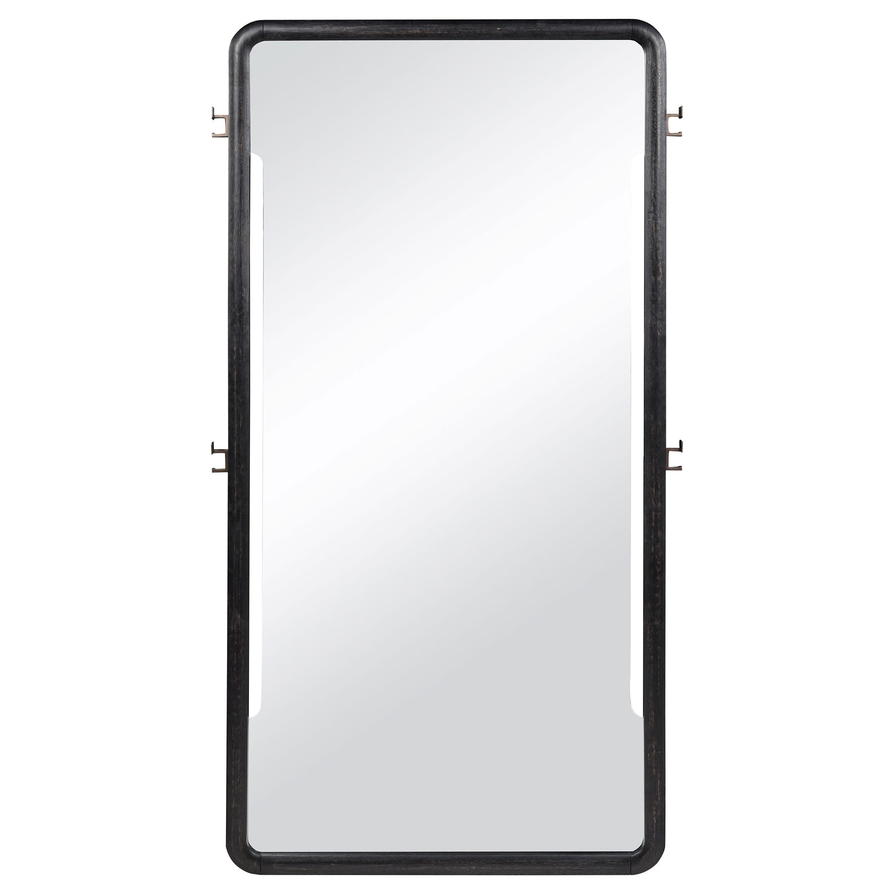 Bold in scale and softly contoured, this full-length floor mirror brings sculptural presence to any room. Framed in a deep burnished black finish with rounded corners, it offers a tall, uninterrupted reflection perfect for everyday use. Designed to lean securely against the wall, it also features integrated side hooks ideal for hanging garments, accessories, or daily essentials with subtle utility and style. Key Features: • Full-length floor mirror with burnished black frame and softly rounded corners • Lean-back design provides secure positioning against the wall without mounting • Tall reflective surface offers complete head-to-toe visibility • Integrated side hooks allow for hanging clothing, bags, or accessories • Sculptural shape and curved edges add subtle design character to any space • Crafted from Asian hardwood, engineered wood, and premium mirrored glass